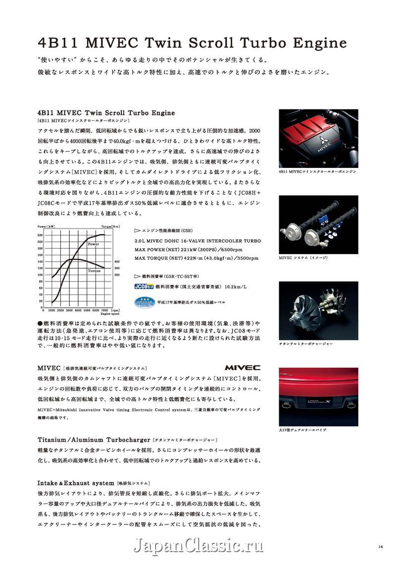 Kolejną zmianą w porównaniu do 4G63T, jest odwrócenie stronami kolektora wydechowego dolotowego. Obecnie kolektor dolotowy jest skierowany w przód samochodu, a wydechowy w tył. Dzięki temu układ wydechowy nie musi przechodzić pod silnikiem, który mógł zostać umiejscowiony 10 mm niżej. Kolektor dolotowy posiada kanały o jednakowej długości. Zastosowana turbosprężarka posiada wykonany z tytanu wirnik, wymiary zostały zoptymalizowane co pozwoliło osiągnąć nawet o 18% szybszą reakcję na dodanie gazu. O niskie opory układu wydechowego i czystość spalin dba stalowy katalizator. Po raz pierwszy w Lancerze zastosowano również elektroniczne sterowanie przepustnicą, co jeszcze bardziej miało skrócić reakcję na dodanie gazu. Silnik występuje w kilku konfiguracjach maksymalnej mocy i momentu obrotowego, zależnych od wersji oraz rynku.